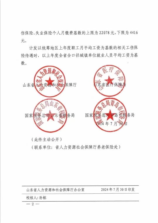 2024年度山东社会保险缴费基数上下限确定发布时间:2024-08-06